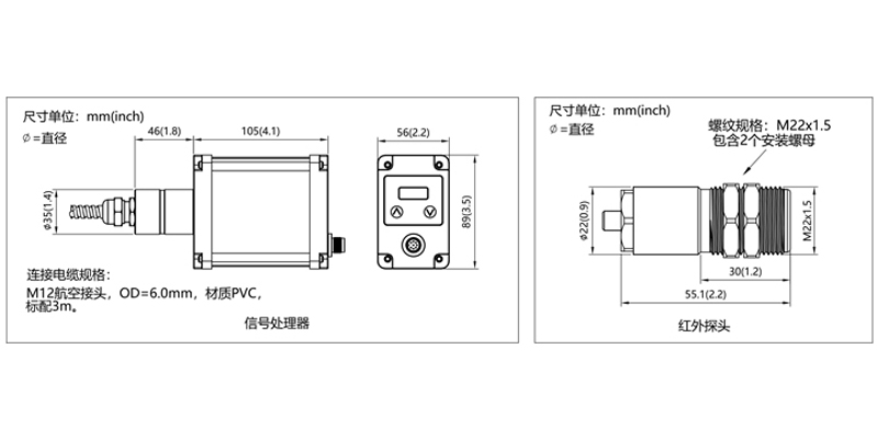 探頭:不銹鋼304,處理器:鋁合金 |