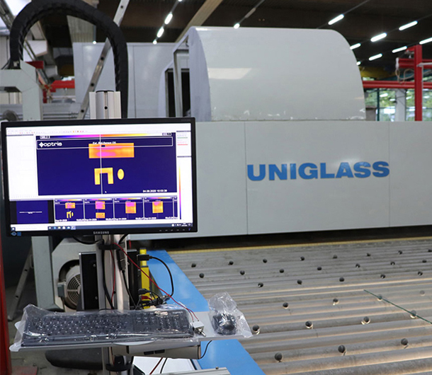 自上而下的 GIS 640 R 系統通過下方的傳感器進行溫度參考,并對標準玻璃和低輻射玻璃進行自動發射率校正,專門用于玻璃鋼化機中的過程控制。