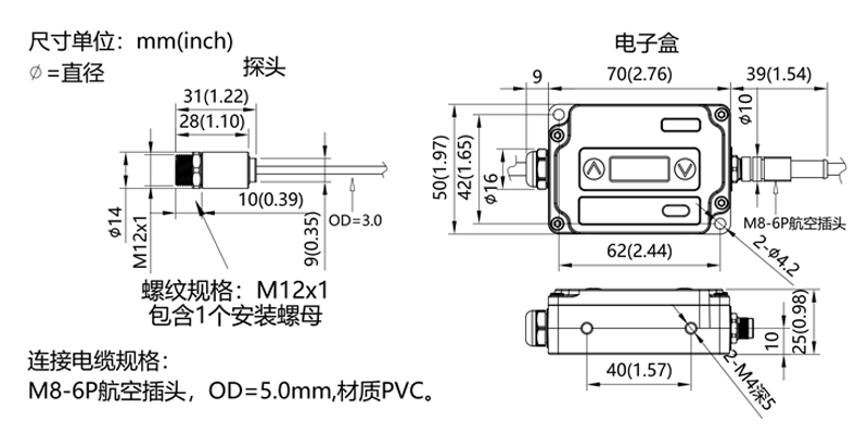 探頭: 不銹鋼304,電子盒: 鋅鋁合金 |