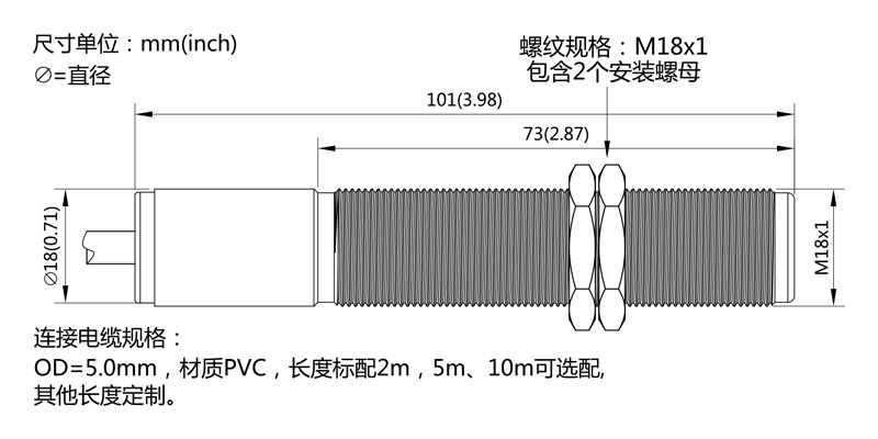 2m(標準),5m、10m(可選) |